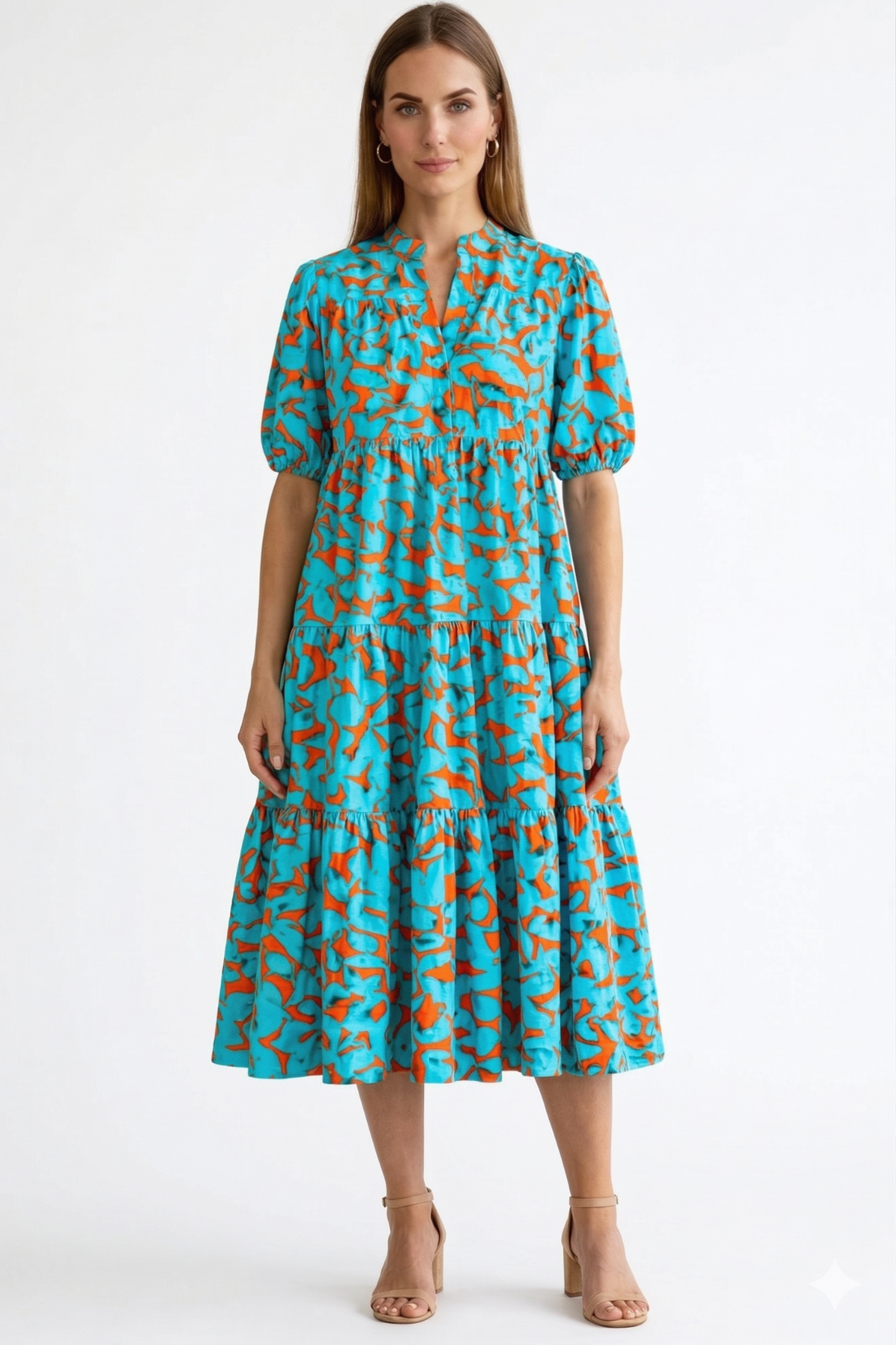 שמלת אוברסייז מכותנה עם הדפס הורס